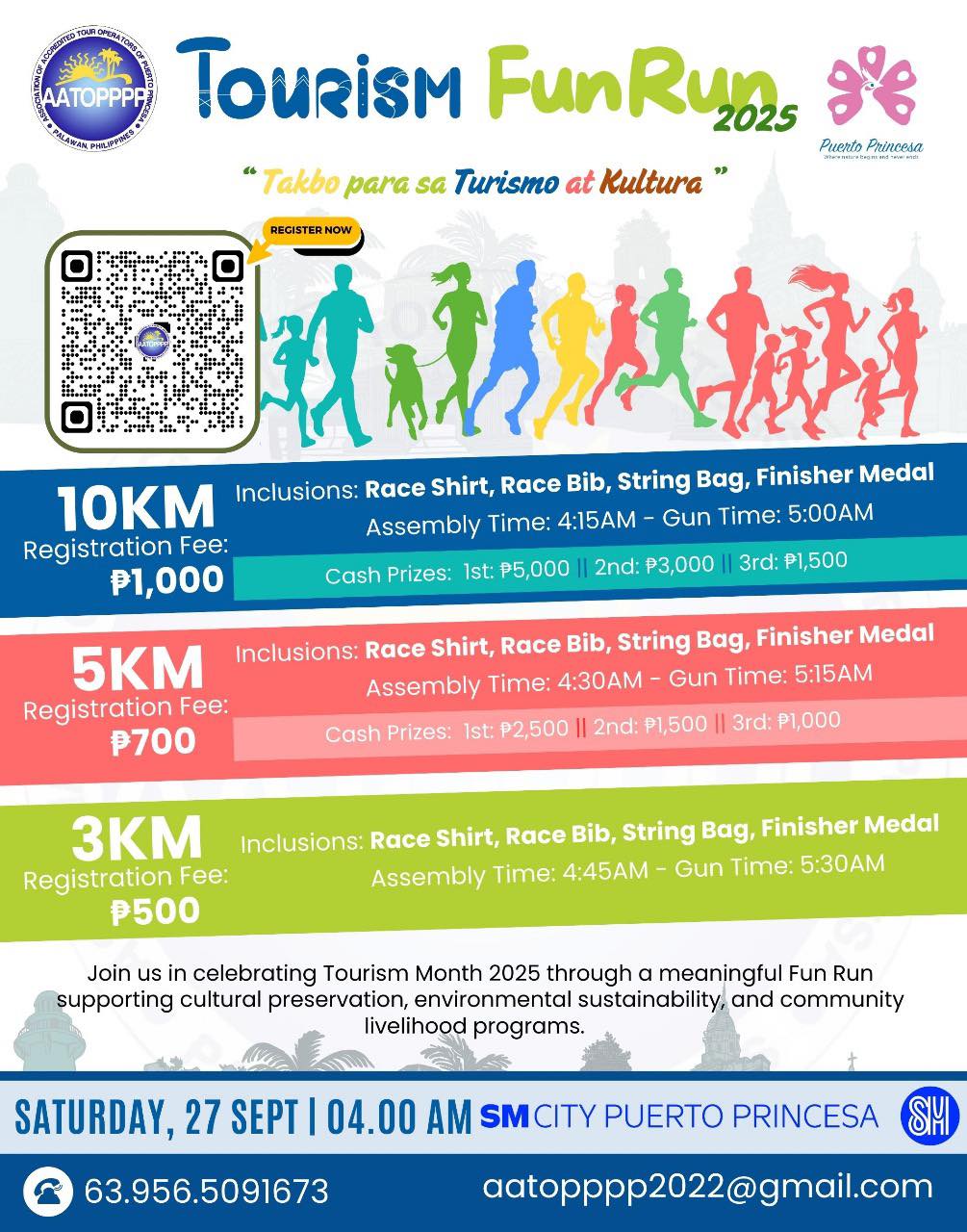 Puerto Princesa City Tourism Fun Run 2025 “Takbo para sa Turismo at Kultura” 📅 Saturday, September 27, 2025 | 🕓 4:00 AM 📍 SM Puerto Princesa RACE CATEGORIES & DETAILS 🔵10KM CATEGORY • Registration Fee: ₱1,000 • Inclusions: Singlet, Race Shirt, Race Bib, String Bag, Finisher Medal • Assembly: 4:15 AM | Gun Time: 5:00 […]