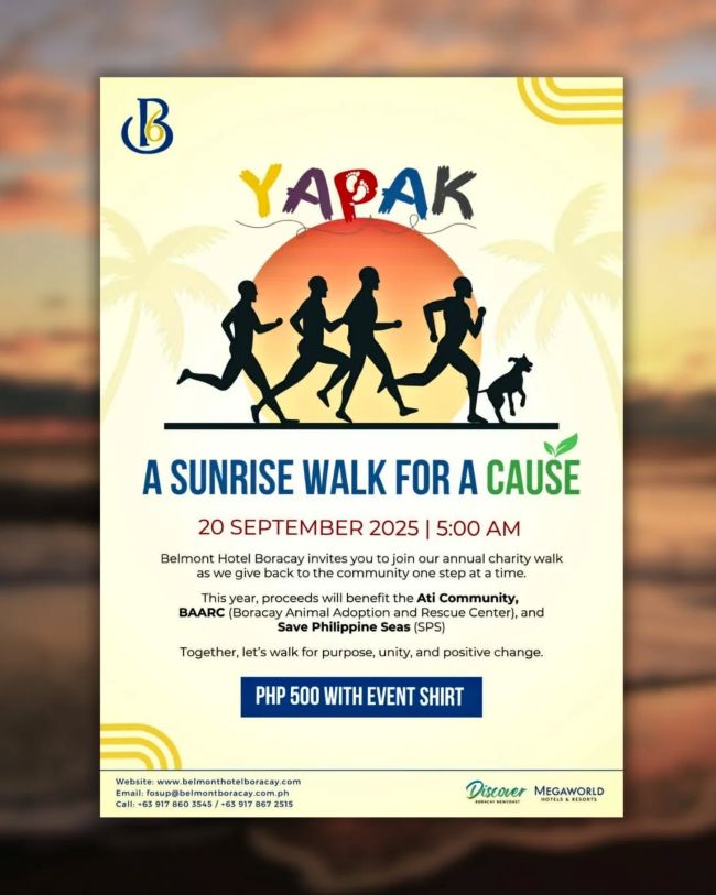 Sunrise Walk for a Cause Yapak Beach, Boracay Island 📅 September 20, 2025 | ⏰ 5:00 AM 📍 Starting point: Belmont Hotel Boracay Celebrate @belmont_boracay’s 6th anniversary with a sunrise walk that gives back to the community. 💛 ✨ Registration is free or ₱500 with a YAPAK event T-shirt 👕 Proceeds will benefit: 👣 the […]