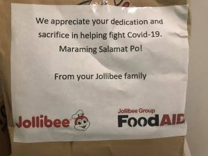 27th March – Jolibee and McDonald’s join forces and donate meal packs to Front Liners PNP Boracay.