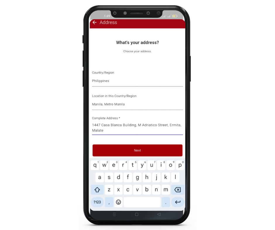 7. Add your establishment Address and click Next.