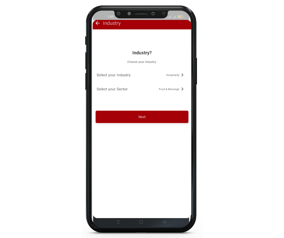 6. You now need to select the Industry (Hospitality) and the Sector your business comes under.