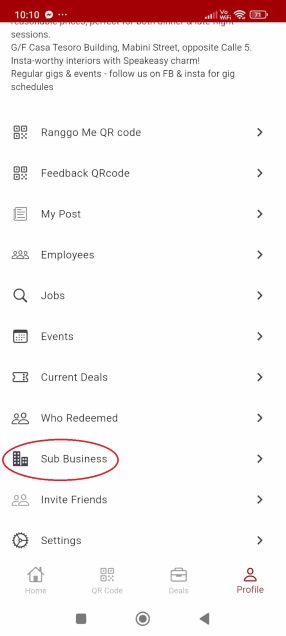 15. To Add Branches go to your Profile, found on the bottom of the screen. Scroll down and click on Sub Business.