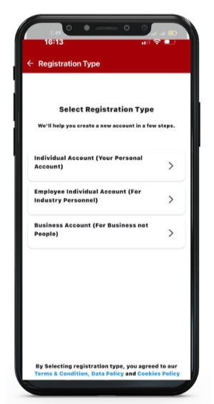 4. On the “Select Registration Type” screen, select Individual Account (Your Personal Account)