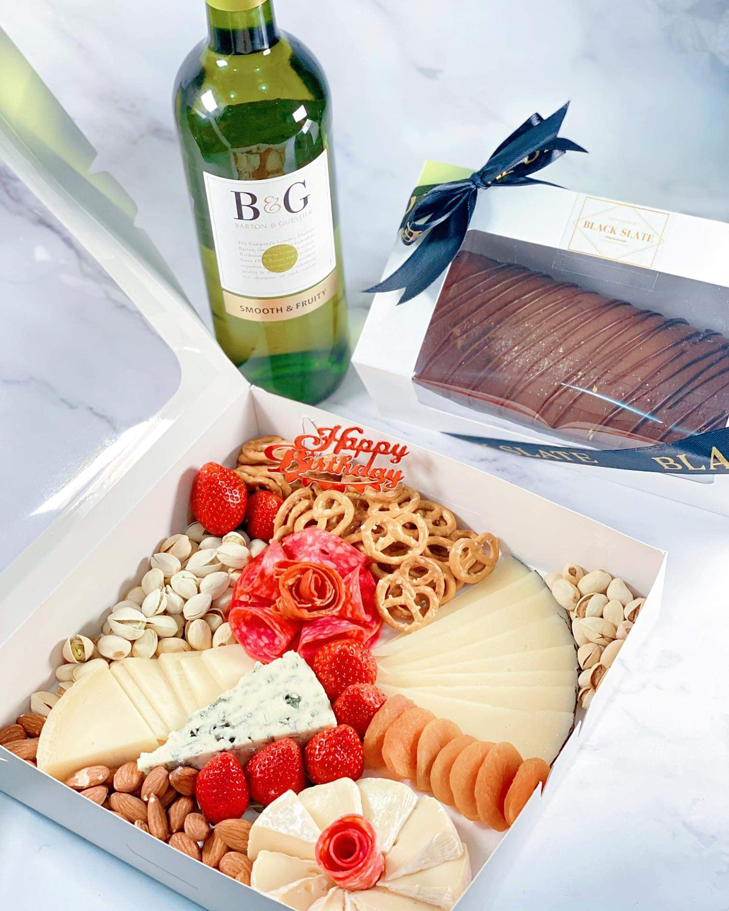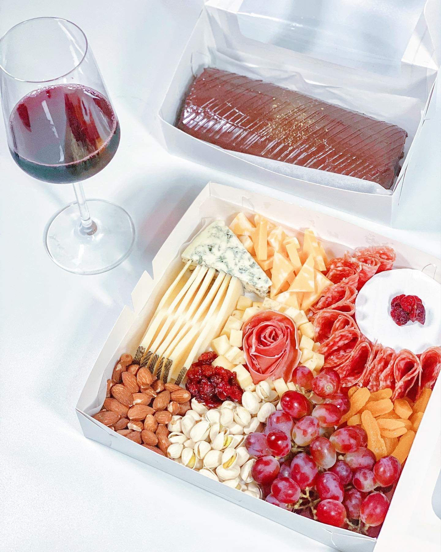 Hotelier couple Chef Donald Dimayuga Pesigan and Christine Torio have put together a variety of grazing boxes to choose from. Great as a gift idea, event giveaways, party centerpiece or date night treat. They also offer decadent Swiss rolls and elegant wines to pair with their grazing boxes.